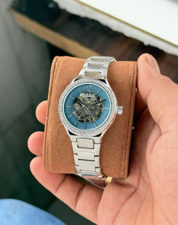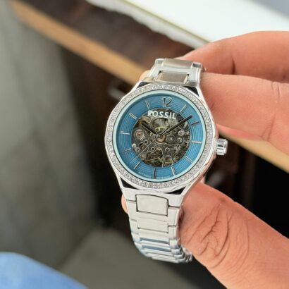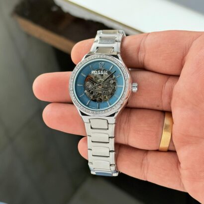 – Clear Silver Blue stainless steel dial